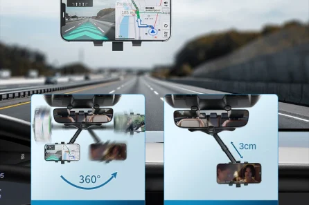 Supporto telefono specchietto retrovisore, con funzione girevole a 360°,rotazione verticale e orizzontale di 90 gradi e inclinazione di 180 gradi.